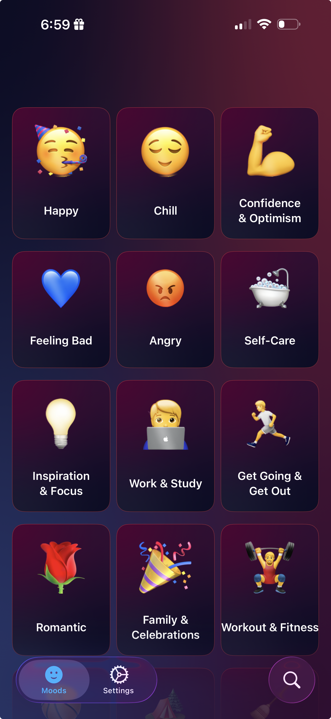 DJ Mood unlocks over 250 hidden Apple Music playlists that you can only discover by asking Siri — until now. All beautifully organized by mood, activity, and vibe.