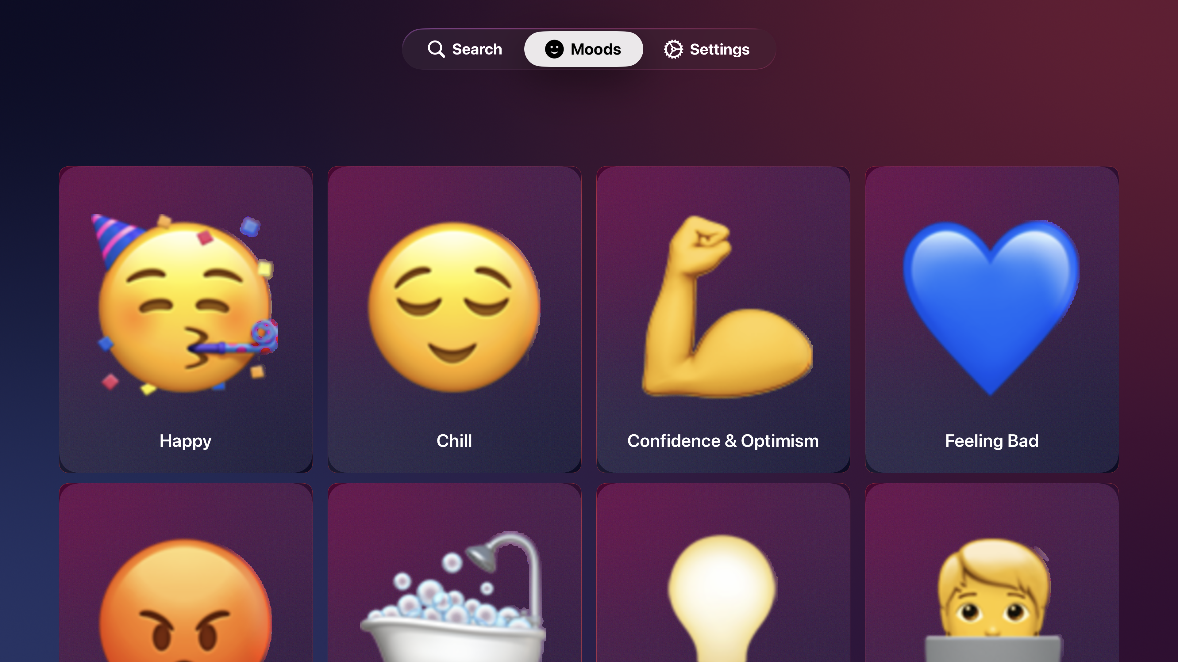 DJ Mood surfaces Apple Music’s “Siri playlists” — 250+ mood and activity-based playlists that Apple created but never made browsable. These playlists are normally only discoverable by asking Siri things like “play something happy” or “play workout music.” DJ Mood presents them all in a beautiful, organized interface so you can browse and discover without guessing what to ask.